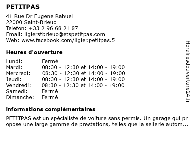 | Mercredi | 08:30-12:30 et 14:00-19:00 |