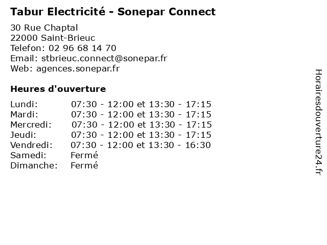 Lundi | 07:30-12:00 et 13:30-17:15 |