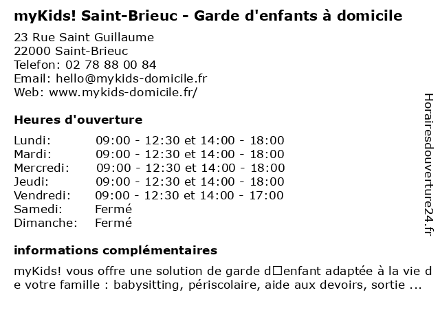 | Mercredi | 09:00-12:30 et 14:00-18:00 |