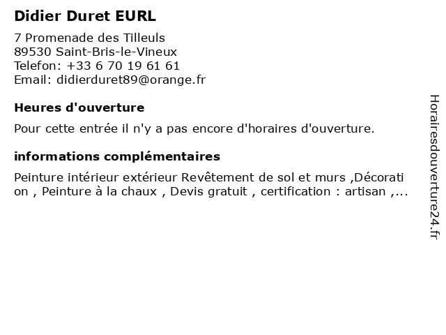 | Appeler Didier Duret EURL | |