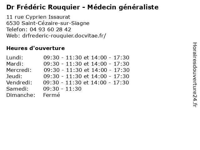 | Lundi | 09:30-11:30 et 14:00-17:30 |