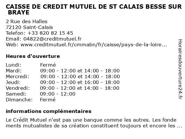 Termes de recherche pour CAISSE DE CREDIT MUTUEL DE ST CALAIS BESSE SUR BRAYE:sur, de, st, calais, braye, crédit, mutuel, caisse, besse |