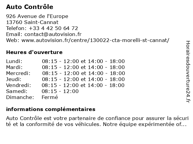 | Lundi | 08:15-12:00 et 14:00-18:00 |