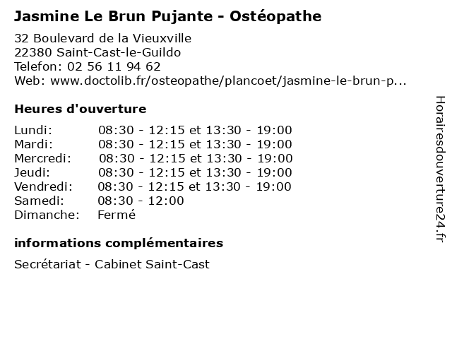 | Mercredi | 08:30-12:15 et 13:30-19:00 |