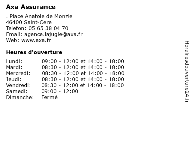 | Mardi | 08:30-12:00 et 14:00-18:00 |