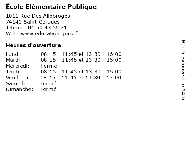 | Lundi | 08:15-11:45 et 13:30-16:00 |