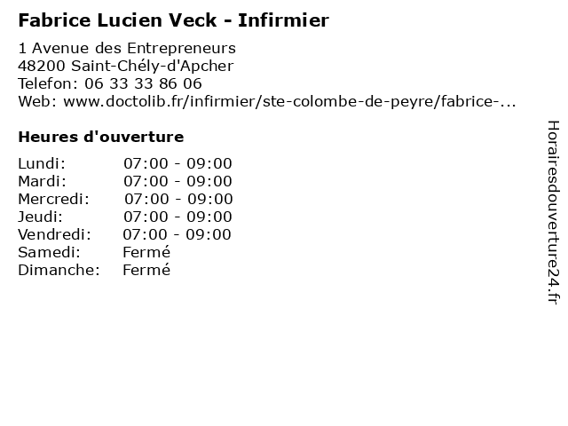 3 Isabelle Cousteix Boyer - Infirmière (Distance: 27,18 km) - Le Bourg, 15260 Neuveglise boyer, cousteix, infirmier, infirmiere, infirmière, isabelle, sante, soins 4 Francoise Buffier - Infirmière (Distance: 29,05 km) 2 Avenue du Dr Louis Mallet, 15100 Saint-Flour buffier, francoise, infirmier, infirmière, medecin, sante, soins 5 L Eldorado (Distance: 34,32 km) 88 Route Nationale, 43490 Costaros boissons, débits, eldorado, fabrice, faure 6 Boucherie Millet (Distance: 47,48 km) 17 Rue du Général Pissis, 43230 Paulhaguet boucherie, boucheries, fabrice, millet, poissonneries |