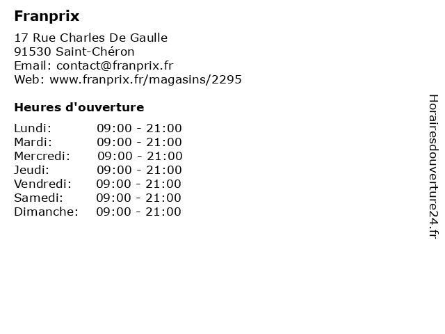 1 Franprix (Distance: 8,68 km) 42 rue de Chartres, 91410 DOURDAN alimentation générale, entretien de la maison et de l'hygiène, franprix, franprix magasin, fruits et légumes frais 2 Franprix (Distance: 13,76 km) 33 rue des Cordeliers, 91150 ETAMPES alimentation générale, entretien de la maison et de l'hygiène, franprix, franprix magasin, fruits et légumes frais 3 Franprix (Distance: 14,72 km) 4 Avenue du Berry, 91940 Les Ulis bibi, carte de fidélité, courses, franprix, magasin, produits frais, programme de fidélité, supermarché, épicerie 4 Franprix (Distance: 14,84 km) 20 allée de la Halle, 91310 Montlhéry alimentation, franprix, fruits, legumes, superettes 5 Franprix (Distance: 15,01 km) 3 Place du Marché Neuf, 91190 Gif-sur-Yvette alimentaire, franprix, magasin alimentaire, magasin de proximité 6 Franprix (Distance: 16,23 km) 7 Bis Rue de la Croix de Grignon, 91190 Gif-sur-Yvette alimentation, epicerie, franprix, supermarché |
