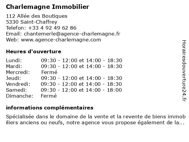 Lundi | 09:30-12:00 et 14:00-18:30 |