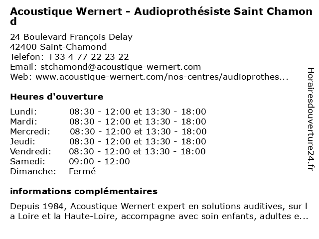 1 Audioprothésiste SAINT-CHAMOND Optical Center (Distance: 0,07 km) 2B Square Croix Gauthier, 42400 Saint-Chamond audioprothésiste, center, chamond, optical, saint 2 Raphaelle Martin - Audioprothésiste (Distance: 0,24 km) 4 Rue de l'Armistice, 42400 Saint-Chamond audio, audio2000, audioprothésiste, audition, martin, oreille, raphaelle 3 Acoustique Wernert - Audioprothésiste La Talaudière (Distance: 5,87 km) 12 Rue de la République, 42350 La Talaudière acoustique, audioprothésiste, la, talaudière, wernert 4 Acoustique Wernert - Audioprothésiste Saint Priest en Jarez (Distance: 10,07 km) 6 Place Massenet, 42270 Saint-Priest-en-Jarez acoustique, audioprothésiste, en, jarez, priest, saint, wernert 5 Acoustique Wernert - Audioprothésiste Saint-Etienne Libération (Distance: 10,15 km) 7 Avenue de la Libération, 42000 Saint-Étienne acoustique, audioprothésiste, etienne, libération, saint, wernert 6 Acoustique Wernert - Audioprothésiste Rive de Gier (Distance: 10,30 km) 1 Rue Roquille, 42800 Rive-de-Gier acoustique, audioprothésiste, de, gier, rive, wernert |