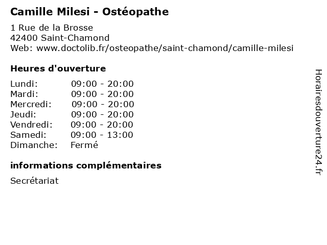 1 Camille Ciman - Psychologue (Distance: 0,83 km) 17 bis Boulevard Waldeck Rousseau, 42400 Saint-Chamond camille, ciman, folie, psychiatre, psychiatrie, psychiatrique, psychologue 2 Camille Albane - Coiffeur Saint-Etienne (Distance: 10,96 km) 9 Rue Michelet, 42000 Saint Etienne albane, camille, coiffeur, etienne, saint, salon de beauté 3 Dr. Camille Sarkis - Gynécologue obstétricien (Distance: 11,04 km) 25 Avenue Albert Raimond, 42270 Saint-Priest-en-Jarez camille, consultation, docteur, dr., gynécologue, med, médecin, médecine, obstétricien, sarkis, traitement 4 Camille Hellis - Psychologue - secrétariat (Distance: 11,51 km) 55 Rue des Passementiers, 42100 Saint-Étienne cabinets, camille, hellis, médecins, psychologue, secrétariat, thérapies 6 Camille Bruyere - Pédicure-podologue (Distance: 11,58 km) 23 Place du Bicentenaire, 42100 Saint-Étienne bruyere, camille, pedicure, pied, podologue, pédicure, sante |