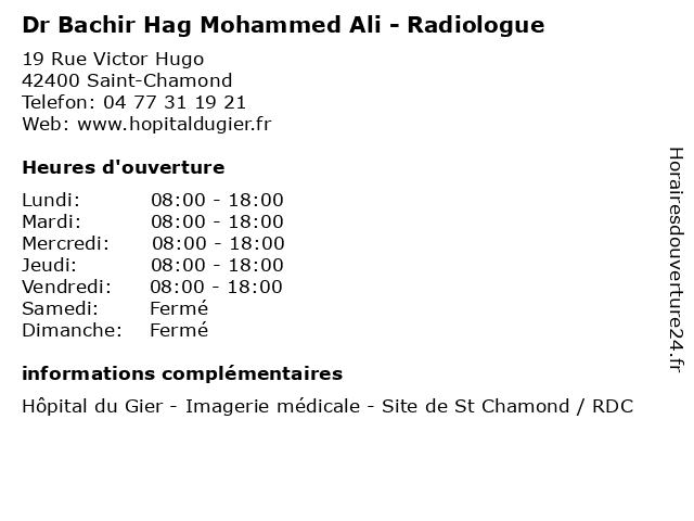 1 Myriam Ben Hadj Ali - Ergothérapeute (Distance: 0,74 km) 17 bis Boulevard Waldeck Rousseau, 42400 Saint-Chamond ali, ben, ergo, ergotherapeute, ergothérapeute, hadj, medecin, myriam, soin 2 Benhadi Mohammed (Distance: 8,71 km) Monsieur Mohammed Benhadi, 42100 Saint Etienne benhadi, mohammed, restaurants 3 Dr Bachir Hag Mohamed Ali - Radiologue (Distance: 9,30 km) 39 Boulevard de la Palle, 42100 Saint-Étienne ali, bachir, consultation, docteur, dr, hag, med, mohamed, médecin, radiologue, traitement 4 Dr Bachir Hag Mohamed Ali - Radiologue (Distance: 10,26 km) 65 Rue Jean Jaurès, 42800 Rive-de-Gier ali, bachir, consultation, docteur, dr, hag, med, mohamed, médecin, radiologue, traitement 5 Dr Sid-Ali Berremila - Anatomo-cyto-pathologiste (Distance: 10,94 km) 25 Avenue Albert Raimond, 42270 Saint-Priest-en-Jarez ali, anatomo, berremila, consultation, cyto, docteur, dr, med, médecin, médecine, pathologiste, sid, traitement 6 Lamine Ali - El Abidi Lahoussine (Distance: 11,03 km) 10 Rue Grenette, 42000 St Etienne abidi, ali, lahoussine, lamine, restaurants |