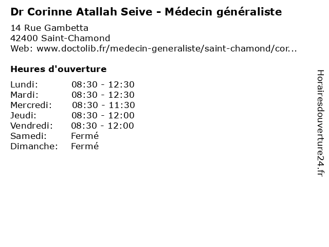 1 Dr Corinne Momplot - Médecin généraliste (Distance: 0,47 km) 19 Rue Victor Hugo, 42400 Saint-Chamond consultation, corinne, docteur, dr, généraliste, med, momplot, médecin, médecine, traitement 2 Dr Corinne Strutynski - Médecin généraliste (Distance: 0,47 km) 19 Rue Victor Hugo, 42400 Saint-Chamond consultation, corinne, docteur, dr, généraliste, med, médecin, médecine, strutynski, traitement 3 Corinne Moscheni - Sage-femme (Distance: 0,47 km) 19 Rue Victor Hugo, 42400 Saint-Chamond consultation, corinne, docteur, dr, femme, med, moscheni, médecin, sage, traitement 4 Maître Corinne Bertrand-Hebrard - Avocate (Distance: 10,32 km) 10 Place Dorian, 42000 Saint-Étienne avocate, avocats, bertrand, civils, corinne, droits, hebrard, juridiques, maître 5 Maître Corinne Bouthier - Avocate (Distance: 10,53 km) 5 cours Victor Hugo, 42000 Saint-Étienne avocate, avocats, bouthier, civils, corinne, droits, juridiques, maître 6 Maître Corinne Béal Cizeron - Avocate (Distance: 10,61 km) 16 Bis rue du Général Leclerc, 42100 Saint-Étienne avocate, avocats, béal, civils, cizeron, corinne, droits, juridiques, maître |