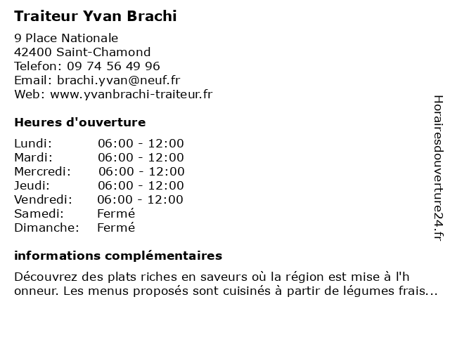 | Samedi | Fermé |
