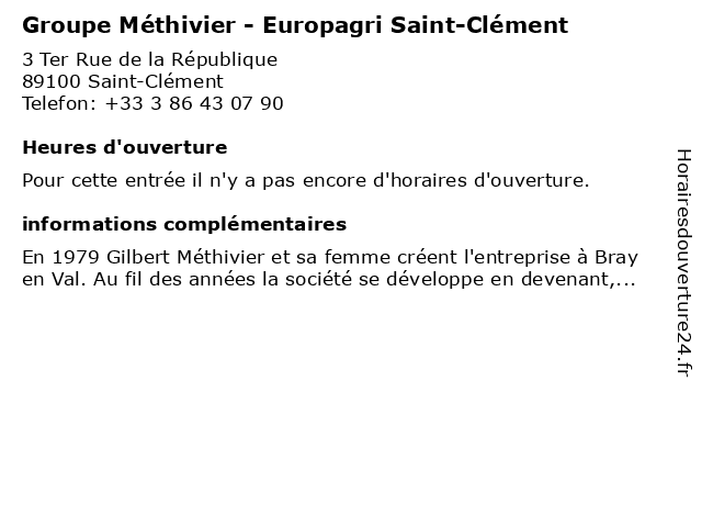 | Appeler Groupe Méthivier - Europagri Saint-Clément | |