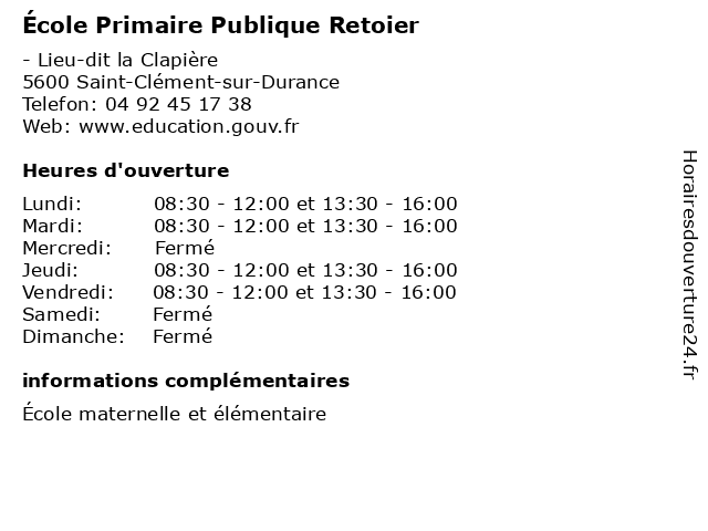 | Mardi | 08:30-12:00 et 13:30-16:00 |