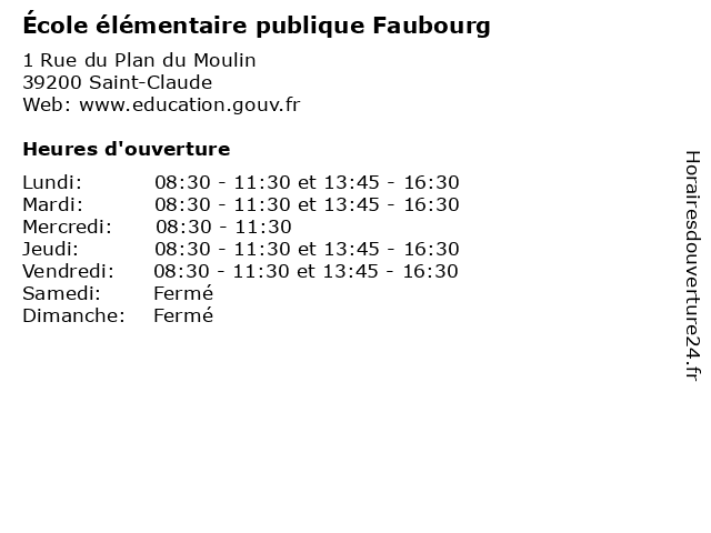 | Mardi | 08:30-11:30 et 13:45-16:30 |