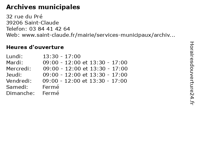 Mercredi | 09:00-12:00 et 13:30-17:00 |