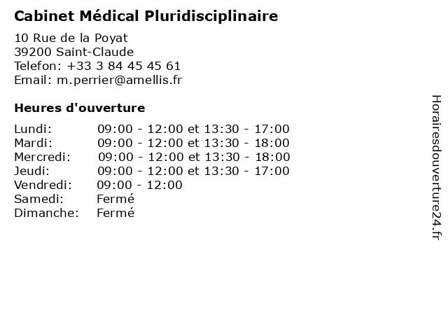 | Mercredi | 09:00-12:00 et 13:30-18:00 |