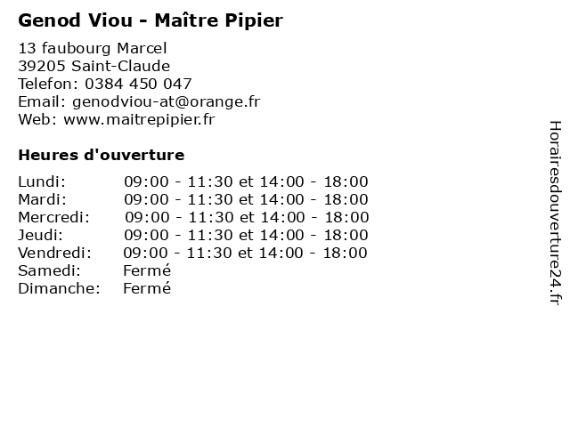 | Vendredi | 09:00-11:30 et 14:00-18:00 |