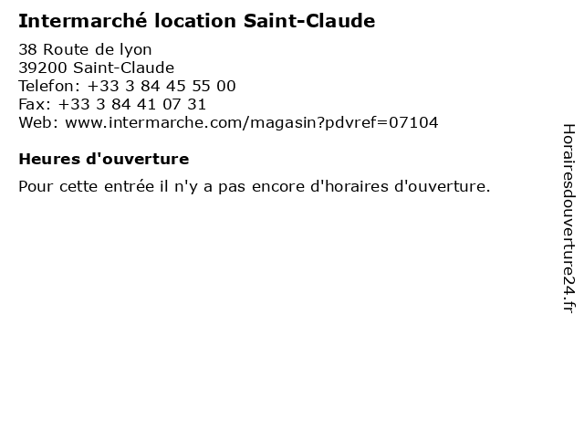 1 Intermarché station-service Saint-Claude (Distance: 0,00 km) 38 Route de lyon, 39200 Saint-Claude claude, intermarché, saint, service, station 2 Intermarché station-service Saint-Claude (Distance: 0,03 km) 38 Route de Lyon, 39200 Saint-Claude claude, intermarché, saint, service, station 3 Intermarché SUPER Saint-Claude (Distance: 0,06 km) 38 Route de lyon, 39200 Saint-Claude claude, intermarché, saint, super 4 CarGo Location de Véhicules SAINT CLAUDE (Distance: 2,77 km) 18 Rue Voltaire, 39200 Saint-Claude cargo, claude, de, location, saint, véhicules 5 Intermarché location Lavancia-Epercy (Distance: 13,87 km) ZAC Sous la Combe, 01590 Lavancia-Epercy epercy, intermarché, lavancia, location 6 ADA - Agence de location de voiture et utilitaire (Distance: 17,25 km) 445 Avenue Jean Coutty, 01100 Arbent ada, agence, auto, de, et, location, location de voiture, roulez, utilitaire, voiture, véhicules |
