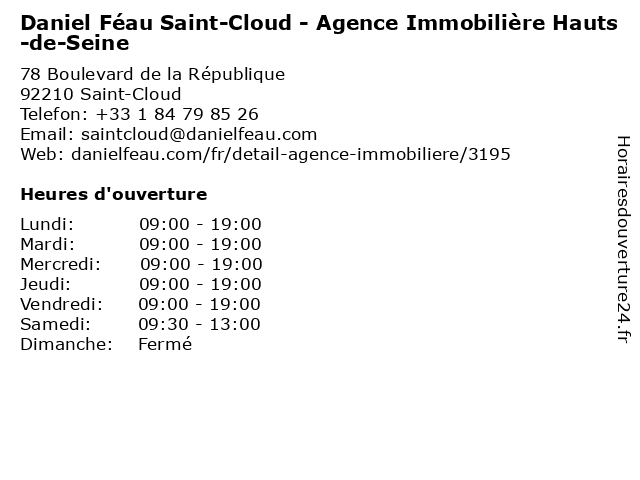1 Daniel Féau (Distance: 0,01 km) 78 boulevard de la République, 92210 Saint-Cloud achats, agence, cloud, daniel, féau, immobilière, saint, ventes 2 Century 21 - Solution Immobilière (Distance: 0,23 km) 60 boulevard de la République, 92210 Saint-Cloud 21, agence, century, gestion, immobilier, immobilière, location, solution, transaction, vente 3 Communauté de Communes d'agglomération Coeur-de-Seine (Distance: 0,45 km) 13 Place Charles-de-Gaulle, 92211 Saint-Cloud administration, coeur, communauté, communes, d'agglomération, de, seine, services publics 4 Klap Daniel Frédéric Vétérinaire (Distance: 1,46 km) 91 Avenue Jean Baptiste Clement, 92100 Boulogne-Billancourt daniel, frédéric, klap, vétérinaire 5 Huet Fabrice Daniel Roger (Distance: 1,58 km) 11 Rue Alfred Laurant, 92100 Boulogne Billancourt boucheries, daniel, fabrice, huet, poissonneries, roger 6 Daniel Féau Boulogne - Agence Immobilière Boulogne-Billancourt (Distance: 1,63 km) 59 Avenue Jean Baptiste Clément, 92100 Boulogne-Billancourt agence, agence immobilière, billancourt, boulogne, daniel, estimation, féau, immobilière, location d'appartement, luxe, vente d'appartement |
