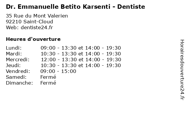 | Lundi | 09:00-13:30 et 14:00-19:30 |