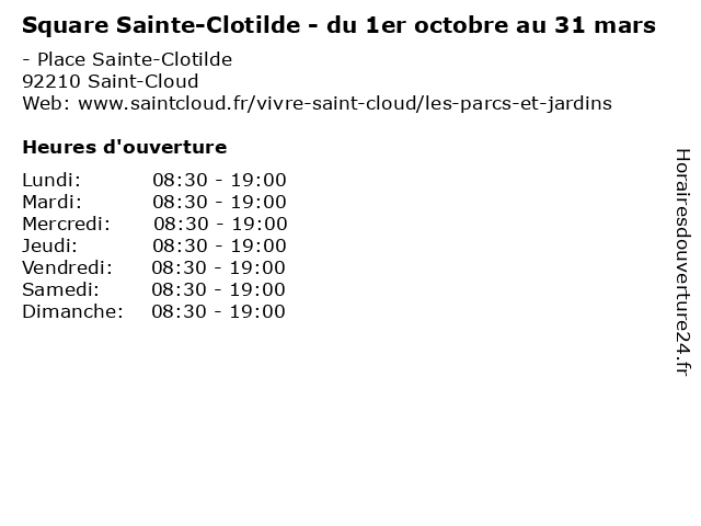 | Samedi | 08:30-19:00 |