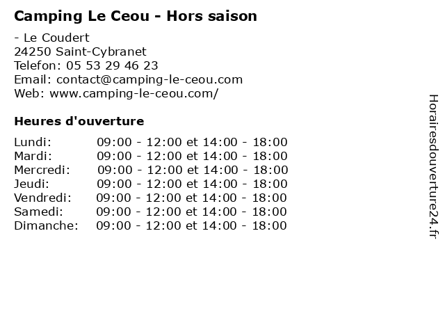 | Mercredi | 09:00-12:00 et 14:00-18:00 |