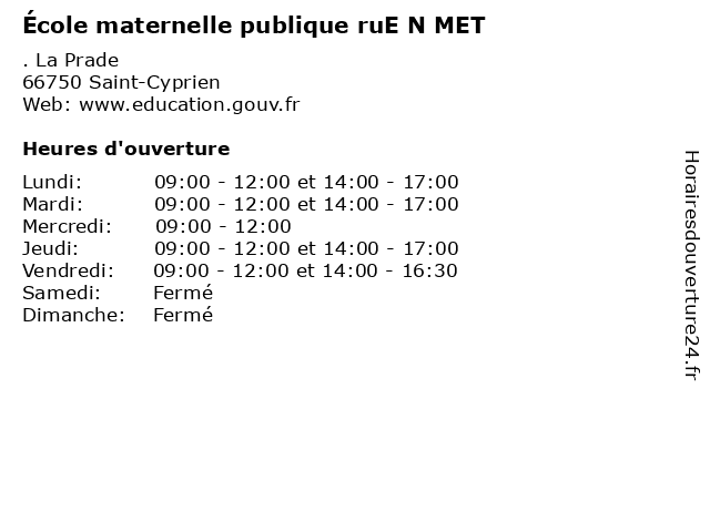 | Lundi | 09:00-12:00 et 14:00-17:00 |