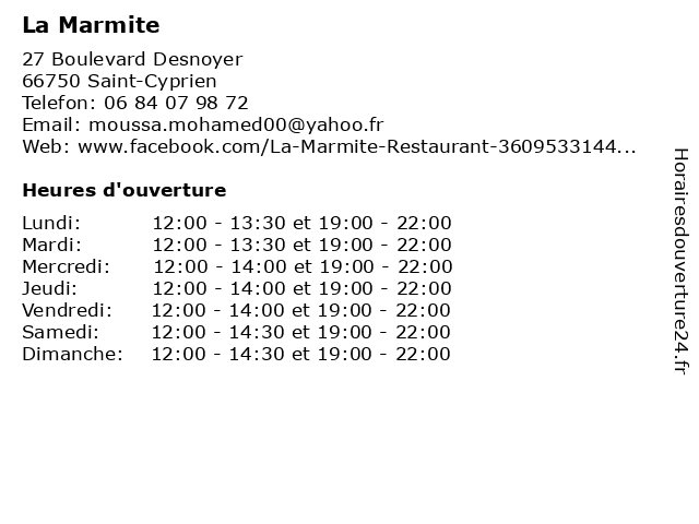 | Mardi | 12:00-13:30 et 19:00-22:00 |