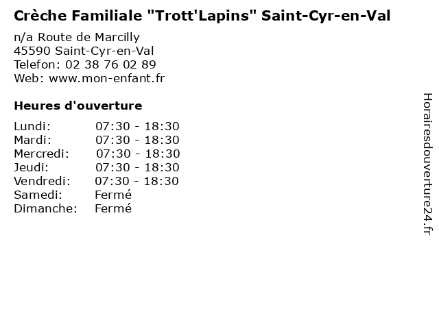 Termes de recherche pour Crèche Familiale "Trott'Lapins" Saint-Cyr-en-Val:en, val, saint, cyr, creche, familiale, child care, caregivers houses, family home, home care, kindergartens, micro-nurseries, parental home, "trott'lapins" |