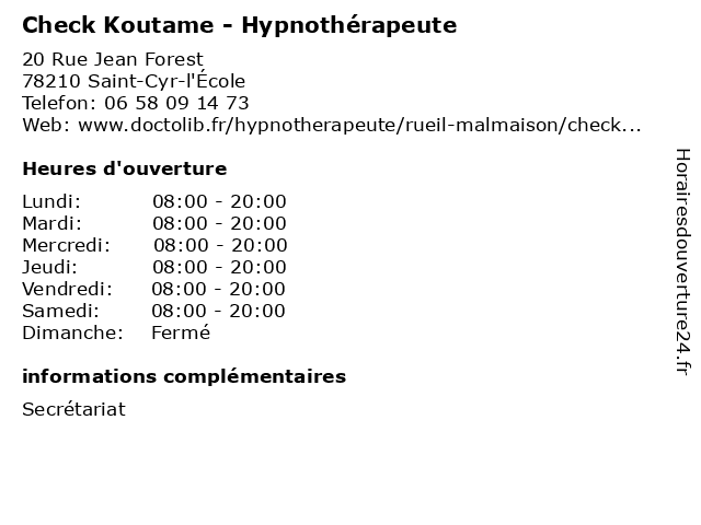 | Samedi | 08:00-20:00 |