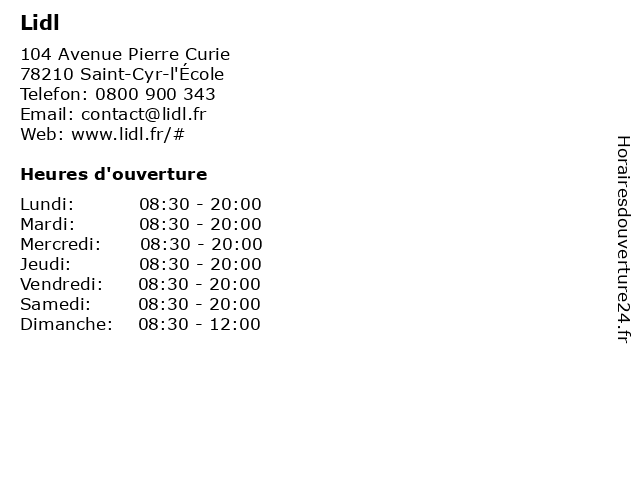| 1 Lidl (Distance: 1,04 km) - Rue de l' Aérostation Maritime, 78210 Saint Cyr l'Ecole bonnes affaires, cyr, discount, fruits et légumes, l'ecole, lidl, magasins de la chaîne européens, moins cher, plantes et fleurs, st, super saturday, supermarché 2 Lidl (Distance: 2,73 km) - Croix Blanche, 78390 Bois d'Arcy bois, bonnes affaires, d'arcy, discount, fruits et légumes, lidl, magasins de la chaîne européens, moins cher, plantes et fleurs, super saturday, supermarché 3 Lidl (Distance: 4,57 km) 24 Rue des Fleurs, 78960 Voisins le Bretonneux bonnes affaires, bretonneux, discount, fruits et légumes, le, lidl, magasins de la chaîne européens, moins cher, plantes et fleurs, super saturday, supermarché, voisins 4 Lidl (Distance: 8,21 km) 8 rue Paul Langevin, 78370 Plaisir bonnes affaires, discount, fruits et légumes, lidl, magasins de la chaîne européens, moins cher, plaisir, plantes et fleurs, super saturday, supermarché 5 Lidl (Distance: 9,98 km) 21 Route Nationale 10, 78310 Coignières bonnes affaires, coignieres, discount, fruits et légumes, lidl, magasins de la chaîne européens, moins cher, plantes et fleurs, super saturday, supermarché 6 Lidl (Distance: 12,20 km) - Route de l'Abbaye, 91190 Gif sur Yvette bonnes affaires, discount, fruits et légumes, gif, lidl, magasins de la chaîne européens, moins cher, plantes et fleurs, super saturday, supermarché, sur, yvette |