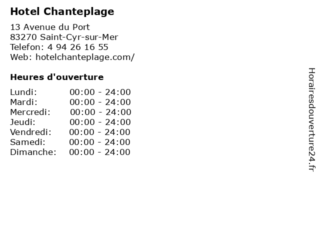 | Samedi | 00:00-24:00 |