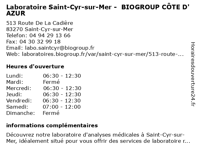 Termes de recherche pour Laboratoire Saint-Cyr-sur-Mer - BIOGROUP CÔTE D'AZUR:sur, mer, saint, cyr, laboratoire, cote, d'azur, biogroup, dépistages, laboratoire de diagnostic |