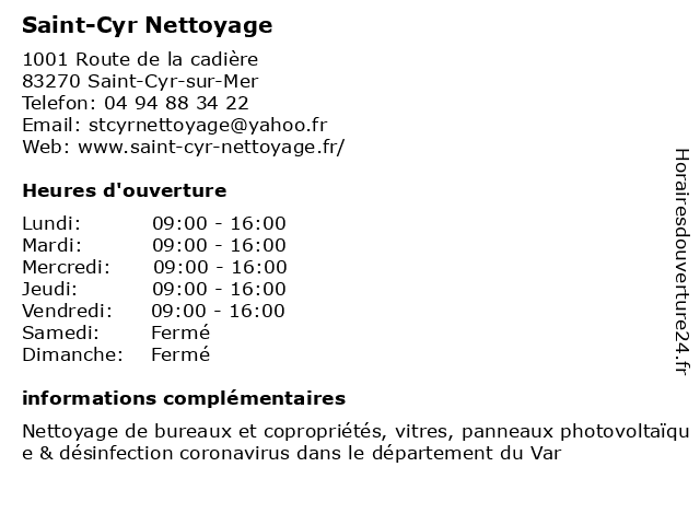 | Mercredi | 09:00-16:00 |