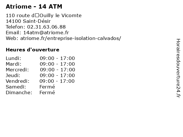 1 14 Atm Sarl (Distance: 2,18 km) 11 Chemin de Manerbe À Ouilly le Vicomte, 14100 Ouilly-le-Vicomte 14, atm, sarl 2 Cycles Evasion 14 SARL (Distance: 2,65 km) 104 Rue Henry Chéron, 14100 Lisieux 14, cycles, evasion, sarl 3 Union départementale des associations familiales - Udaf 14 Calvados (Distance: 4,52 km) 9 rue Calmette et Guérin, 14100 Lisieux 14, associations, calvados, des, départementale, familiales, udaf, union 4 Polyclinique de Lisieux - Clinique Chirurgicale Calvados 14 | LNA Santé (Distance: 4,91 km) 175 Rue Roger Aini, 14100 Lisieux 14, calvados, chirurgicale, clinique, de, lisieux, lna, polyclinique, santé 6 Eurotyre - Cantrel Assistance 14 (Distance: 13,74 km) 7 Rue Laplace, 14130 Pont-l'Évêque 14, assistance, auto, cantrel, eurotyre, garage, pneus, réparation, véhicules |
