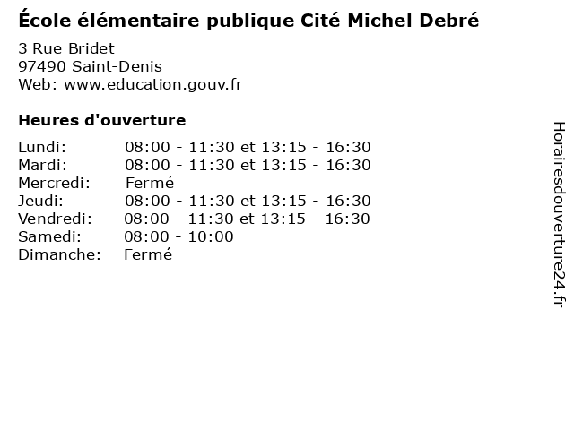 | Vendredi | 08:00-11:30 et 13:15-16:30 |