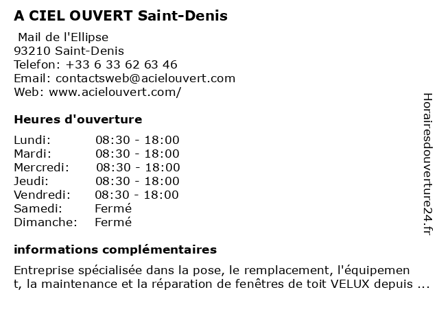 | Samedi | Fermé |