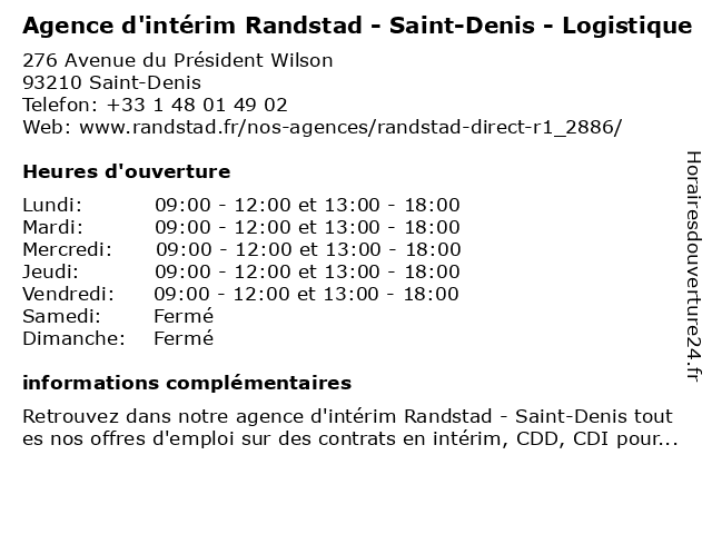 1 Side | Agence d'intérim (Distance: 0,00 km) 276 Avenue du Président Wilson, 93210 Saint-Denis agence, agence d'intérim, contrat de délégation, contrat de gestion, d'intérim, démarche en ligne, emploi, intérim, mission, mission d'intérim, offre d'emploi, plateforme d'intérim, recrutement en cdi, recrutement en ligne, recruter, side 2 Randstad - Inhouse (Distance: 0,00 km) 276 Avenue du Président Wilson, 93211 Saint-Denis inhouse, intérim industrie, intérim logistique, offres d'emploi, randstad, recrutement grands volumes 3 Agence d'intérim Randstad - Saint-Denis - Tertiaire (Distance: 0,01 km) 276 Avenue du Président Wilson, 93210 Saint-Denis agence, d'intérim, denis, intérim, randstad, saint, tertiaire 4 Agence d'intérim Manpower Paris Automobile Recrutement (Distance: 0,30 km) 8 Avenue du Stade de France, 93200 Saint-Denis agence de recrutement, agence intérim, agence pour l'emploi, cabinet de recrutement, cdi, intérim, recrutement 5 Agence d'intérim Manpower Paris Automobile Recrutement (Distance: 0,30 km) 8 Avenue du Stade de France, 93200 Saint-Denis agence de recrutement, agence intérim, agence pour l'emploi, cabinet de recrutement, cdi, intérim, recrutement 6 Leader Intérim (Distance: 3,57 km) 4 avenue Laurent Cély, 92600 Asnieres agence, interim, intérim, leader |