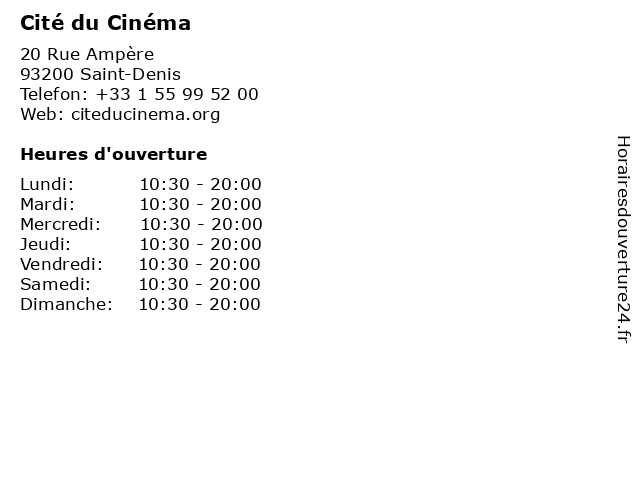 | Dimanche | 10:30-20:00 |