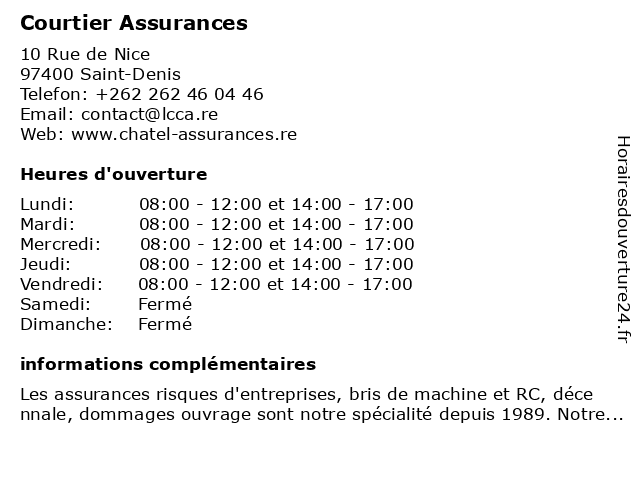 2 MAAF Assurances ST DENIS DE LA REUNION (Distance: 0,48 km) 49 B Rue Juliette Dodu, 97400 Saint-Denis assurance, assurance auto, assurance habitation, assurance moto, assurance professionnelle, assurance prêt immobilier, assurances, crédit auto, de, denis, la, maaf, mutuelle, mutuelle santé, reunion, st 3 MAIF Assurances Saint Denis (Distance: 0,50 km) gpe Maif Cs 41069, 97400 Saint denis assurances, denis, maif, saint 4 ANSET Assurances du Butor (Distance: 2,17 km) 1 Rue du Butor, 97400 Saint-Denis agence, anset, assurance, assurances, butor, conseils, courtier, du, protections 5 ANSET Assurances des Camélias (Distance: 2,31 km) 9 Boulevard Doret, 97400 Saint-Denis agence, anset, assurance, assurances, camélias, conseils, courtier, des, protections 6 Réunion Assurances (Distance: 4,27 km) 45 Avenue Leconte de Lisle, 97490 Saint-Denis assurance, assurances, auto, habitation, prévoyance, réunion, santé, sécurité |