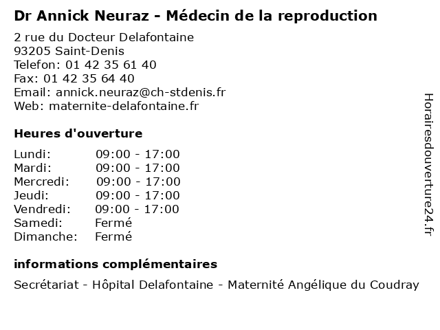 1 Dr Annick Neuraz - Médecin de la reproduction (Distance: 6,12 km) 2 Rue Ambroise Paré, 75010 Paris annick, de, dr, la, médecin, médecins, médicaments, neuraz, reproduction, santé, secrétariat, spécialiste 2 Crèche Annick Kélébé (Distance: 2,67 km) 15 bis Avenue de la République, 93300 Aubervilliers annick, crèche, kélébé 3 Dr Annick Le Toqueux - Psychiatre (Distance: 5,39 km) 31 Rue Pajol, 75018 Paris annick, dr, le, médecin, médecine, médical, pharmaceutique, psychiatre, toqueux, traitement 4 Dr. Marie-Annick Domin- Endocrinologie (Distance: 5,56 km) 3 Rue de la Paix, 92230 Gennevilliers annick, consultation, docteur, domin, dr., endocrinologie, marie, santé 6 Marie-Annick Lelias - Pédicure-podologue (Distance: 8,02 km) 48 Boulevard Marceau, 92700 Colombes annick, cheville, lelias, marie, orteil, pied, podologue, pédicure |