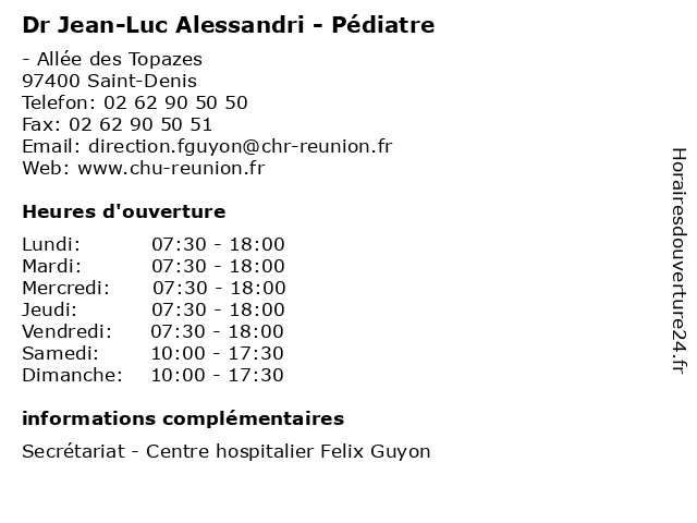 1 Dr Jean-Luc Michel - Chirurgien infantile (Distance: 0,00 km) - Allée des Topazes, 97400 Saint-Denis chirurgien, consultation, docteur, dr, infantile, jean, luc, med, michel, médecin, traitement 2 Dr Jean-Luc Yvin - Spécialiste en médecine interne (Distance: 0,00 km) - Allée des Topazes, 97400 Saint-Denis consultation, docteur, dr, en, interne, jean, luc, med, médecin, médecine, spécialiste, traitement, yvin 3 Dr Jean-Luc Rittie - Pédiatre (Distance: 0,00 km) - Allée des Topazes, 97400 Saint-Denis consultation, docteur, dr, jean, luc, med, médecin, pédiatre, rittie, traitement 4 Dr Géraldine Abadie - Pédiatre (Distance: 0,00 km) - Allée des Topazes, 97400 Saint-Denis abadie, consultation, docteur, dr, geraldine, géraldine, med, médecin, pédiatre, traitement 5 Dr Claire Brayer - Pédiatre (Distance: 0,00 km) - Allée des Topazes, 97400 Saint-Denis brayer, claire, consultation, docteur, dr, med, médecin, pédiatre, traitement 6 Dr Etienne Darrieux - Pédiatre (Distance: 0,00 km) - Allée des Topazes, 97400 Saint-Denis consultation, darrieux, docteur, dr, etienne, med, médecin, pédiatre, traitement |