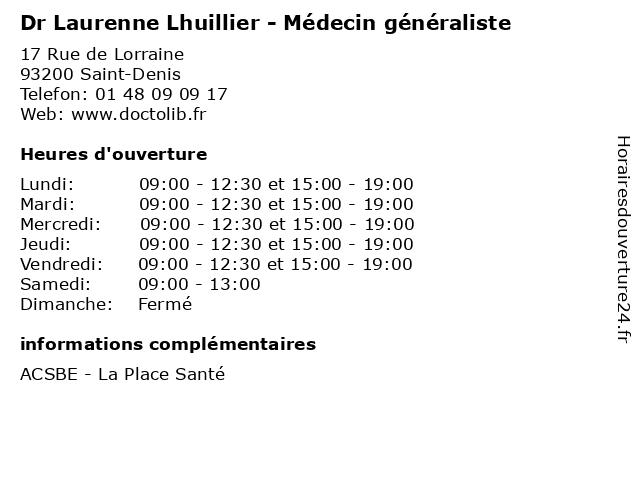 Lundi | 09:00-12:30 et 15:00-19:00 |