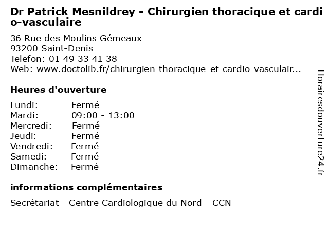 1 Dr Nicolas Bonnet - Chirurgien thoracique et cardio-vasculaire (Distance: 0,00 km) 36 Rue des Moulins Gémeaux, 93200 Saint-Denis bonnet, cardio, chirurgien, consultation, docteur, dr, et, med, médecin, médecine, nicolas, secrétariat, thoracique, traitement, vasculaire 2 Dr Patrick Espagne - Chirurgien vasculaire (Distance: 0,00 km) 36 Rue des Moulins Gémeaux, 93200 Saint-Denis chirurgien, consultation, docteur, dr, espagne, med, médecin, médecine, patrick, secrétariat, traitement, vasculaire 3 Dr Uriel Sebbag - Chirurgien vasculaire (Distance: 0,00 km) 36 Rue des Moulins Gémeaux, 93200 Saint-Denis chirurgien, consultation, docteur, dr, med, médecin, médecine, sebbag, secrétariat, traitement, uriel, vasculaire 4 Dr Tonino Palombi - Chirurgien vasculaire (Distance: 0,00 km) 36 Rue des Moulins Gémeaux, 93200 Saint-Denis chirurgien, consultation, docteur, dr, med, médecin, médecine, palombi, secrétariat, tonino, traitement, vasculaire 5 Dr Benoit Mongreiden - Chirurgien vasculaire (Distance: 0,00 km) 36 Rue des Moulins Gémeaux, 93200 Saint-Denis benoit, chirurgien, consultation, docteur, dr, med, mongreiden, médecin, médecine, secrétariat, traitement, vasculaire 6 Dr Joaquin Dominguez - Chirurgien vasculaire (Distance: 0,00 km) 36 Rue des Moulins Gémeaux, 93200 Saint-Denis chirurgien, consultation, docteur, dominguez, dr, joaquin, med, médecin, médecine, secrétariat, traitement, vasculaire |