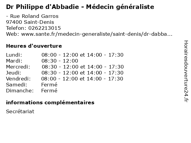 Termes de recherche pour Dr Philippe d'Abbadie - Médecin généraliste:med, philippe, traitement, généraliste, docteur, médecin, consultation, dr, d'abbadie |