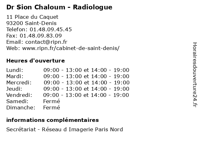 1 Dr Sion Chaloum - Radiologue (Distance: 2,07 km) 35 Rue d'Amiens, 93240 Stains chaloum, consultation, docteur, dr, med, médecin, médecine, radiologue, sion, traitement 2 Dr Sion Chaloum - Radiologue (Distance: 3,22 km) 21 Rue du Commandant Louis Bouchet, 93800 Épinay-sur-Seine chaloum, consultation, docteur, dr, med, médecin, radiologue, sion, traitement 3 Dr Sion Chaloum - Radiologue (Distance: 3,50 km) 7 Avenue Gabriel Péri, 93400 Saint-Ouen chaloum, consultation, docteur, dr, med, médecin, médecine, radiologue, sion, traitement 4 Dr Sion Chaloum - Radiologue (Distance: 4,67 km) 108 Rue du Ruisseau, 75018 Paris chaloum, consultation, docteur, dr, med, médecin, radiologue, sion, traitement 5 Dr Sion Chaloum - Radiologue (Distance: 4,72 km) 4 Rue Gustave Rouanet, 75018 Paris chaloum, consultation, docteur, dr, med, médecin, médecine, radiologue, sion, traitement 6 Dr Sion Chaloum - Radiologue (Distance: 5,14 km) 83 Rue de l'Ourcq, 75019 Paris chaloum, consultation, docteur, dr, med, médecin, radiologue, sion, traitement |