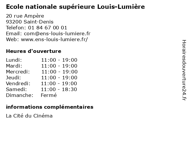 Horaires d'ouverture |